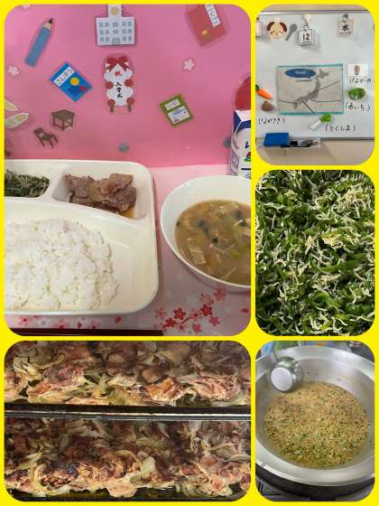 本日の献立は、豚肉のしょうが焼き みそ汁 じゃこピーマン ごはん 牛乳