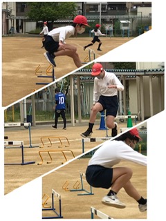 少し肌寒い日になりましたが、6年生はハードルの学習に元気いっぱい取り組んでいます。低いハードルも組み合わせて練習し、自分に合った方法で確認しながら進めていました。