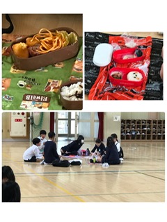 今日は雨天のため、遠足が延期になった6年ですが、楽しく講堂でお弁当タイムができました。延期は残念でしたが、もう一度、お弁当が食べられますね。保護者の皆様には、お弁当などのご準備について、再度のご協力、ありがとうございます。