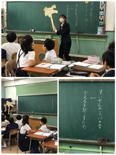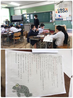 登場人物の気持ちや場面の様子が伝わる表現を考えて、音読に生かします。かえるを起こすすいせんラッパの音、どう表現するか?楽しみですね。