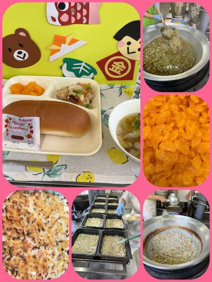 マカロニグラタン キャベツのスープ みかん コッペパン 牛乳 いちごジャム