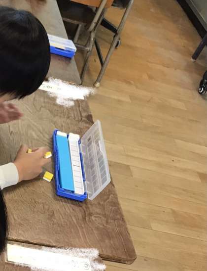 1年も学校にすっかり慣れてきました。本格的に教科の学習を進めています。算数では、数について学んでいます。算数のブロックを使って実際に操作をしながら学びます。入学からどんどん成長していますね。