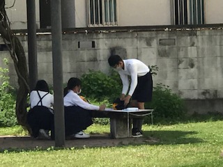 ぽかぽかとした日差しの中、6年は校内で写生をしています。卒業しても思い出に残る校舎の姿を、自分の絵で大切に残してほしいです。できあがりが楽しみですね。