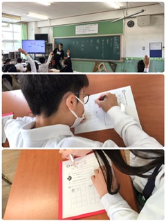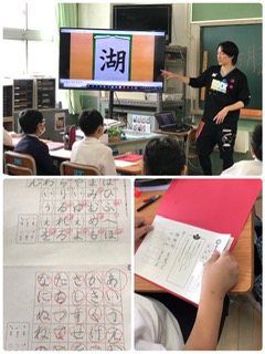 毛筆に関連して、文字のバランスを学び美しい字を書くための学習です。3つのパートで構成されている字を学んでいます。硬筆、毛筆、ともにバランスよく書けるようがんばっています。