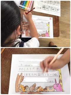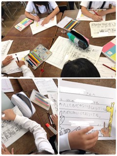 2年生は1年へのメッセージ作をしています。明日(5月18日)の学校探検で1年生を学校案内するのですが、その時に、プレゼントする予定です。とてもかわいらしく、カラフルに色づけされた優しさいっぱいのパンフレットができています。さらに、なかよくなれそうですね。1年生のみなさん!楽しみにしていてくださいね。