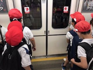 本日は、キッズプラザへの遠足です。無事にみんなそろって出発できました。歩き方も車内も、マナーがとてもよかったです。さぁ、楽しみましょう!
