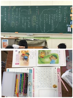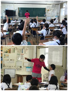 本当の友だちとは?誘いに流されず、しっかり考え、正しく判断したことを相手に伝える勇気など、2年の子ども達がわかりやすい物語を通して考えます。先生と子どもとの即興寸劇を取り入れて、楽しくしっかり考えていました。