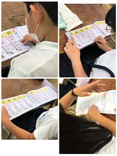 漢字ドリルに書かれている、熟語や使い方など、日によって速読する課題部をきめて、声に出して速読に取り組んでいます。