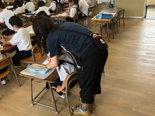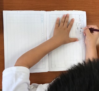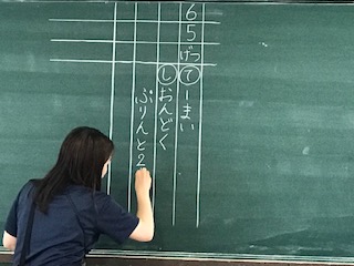 6月から自分で連絡帳を書いています。記号の意味をしっかりおぼえて、書く列も黒板の通りに写す練習です。鉛筆の持ち方も手の置き方も、お手本になるようがんばっています。いつまでも、正しい鉛筆の持ち方や字の書き方を続けて身につけてくださいね!