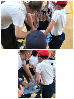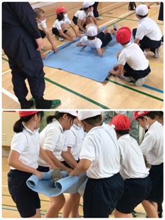 人を抱えて動かす方法、毛布などで運ぶ方法など、ペアや仲間と呼吸を合わせて上手に進めていました。