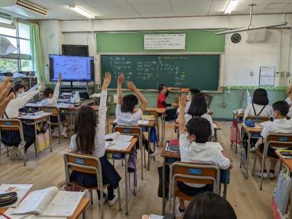全て分数のうえ、かけ算なのかわり算なのか…難しいです。しかし、子ども達は、しっかり考え、発表していました。