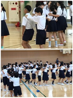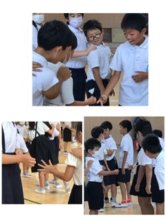 今日の児童朝会は、3年と5年のペア学年集会でした。ジャンケン列車を楽しんでいました。笑顔いっぱい、あっという間に大きな長い列車ができました。