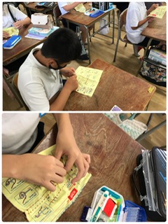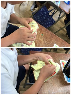 先日から練習している裁縫のさまざまな縫い方の練習を学習参観で見ていただきました。初めに比べて、みんなとても針の運び方に慣れてきています。本返し、半返しもうまくできるようになりました。