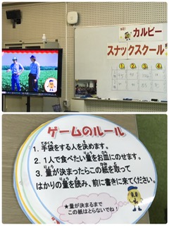 カルビーより講師をお招きして、3年生がSDGsの学習を行いました。1日に食べるお菓子の適量や食品表示の確認の仕方、など食べ物を無駄にしないようにできることを考えました。1日に食べるお菓子の量やカロリーは、200キロカロリー以内でポテトチップスであれば、両手に入るくらいの量だそうです。ビデオからもたくさんのことを学びました
