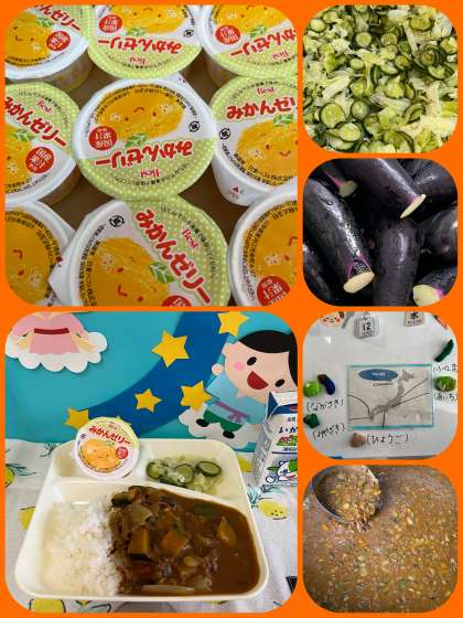 夏野菜のカレーライスは、夏の野菜のかぼちゃ、なす、ピーマンなどを使用した夏を感じることができる献立です。食器を返却する時に「完食しました。おいしかったです。」という子どもたちの元気いっぱいの声