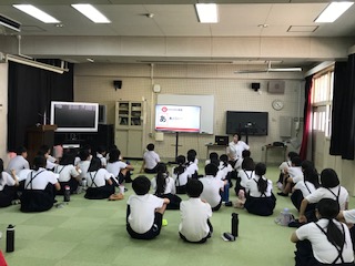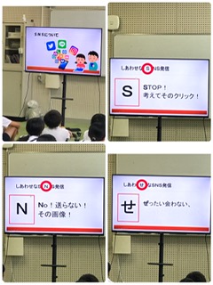 夏休みを前に、警察署が行なっている出前授業、非行防止教室が実施されました。インターネット、SNS など携帯に関する学習でした。真剣にメモをとる姿も見られました。
