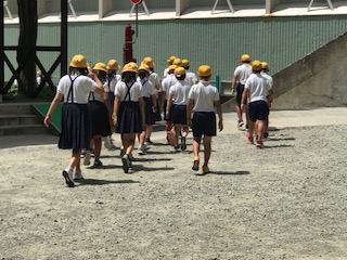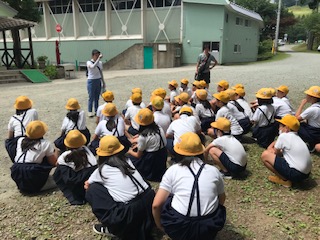 昼食後、いったん部屋に入って、避難訓練をしています。すばやく避難もできました。林間学習、集団生活の始まりです。