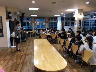 今日の大雨のため、今夜予定のキャンプファイヤーは明日に延期することになりました。代わりに、明日予定だったナイトハイクを今晩に繰り上げます。出発は20時30分から、それまでは、お風呂と葉書の作成で過ごす予定です。予定変更の連絡を受け、キャンプファイヤー延期にガッカリしたようですが、ナイトハイクを楽しみに今から過ごします。