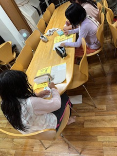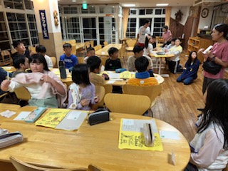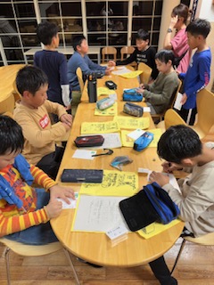2組に引き続き、お風呂から上がってきた1組が、ハガキを書いています。2組は交代して、今、お風呂に入っています。