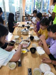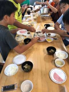 お腹ペコペコです。朝から、仲良く分け合って配膳しています。慣れてきました。