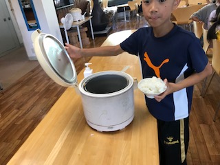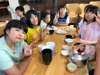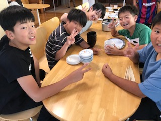 みんなで、しっかりいただきました!どの班も、完食、おかわりでエネルギーはバッチリです。今日も頑張りましょう!