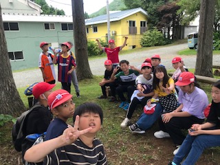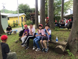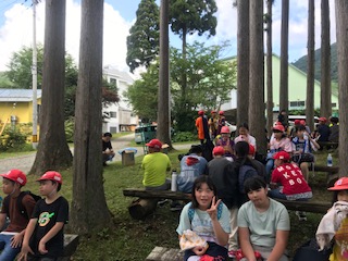 下山完了。冷えた飲料をもらって、休憩中です。さすが、まだまだ、元気です!しばらくしたら、カレーづくりを開始します。