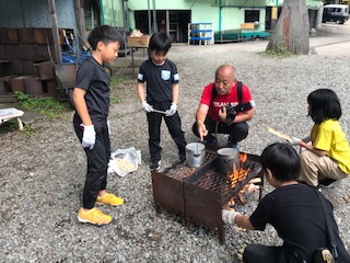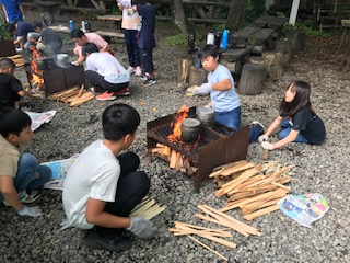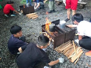 まきで火をおこし、ただいま炊飯が始まりました。火おこし担当の子ども達が、いつもより以上に、たくましく感じます。