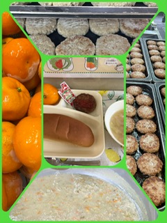 これにあっさりした豆乳スープと冷たく口当たりのよいみかん(冷凍)がつきます。