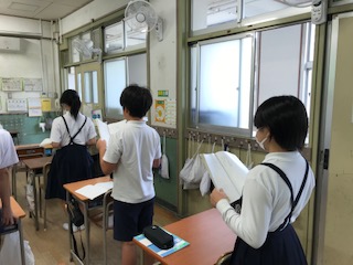 今日は木曜日ですが、2学期初めての木曜日なので、朝の集会はまだ行わず校内での一斉読書の時間にしました。各学級が、それぞれのスタイルで、進めていました。6年は姿勢よく音読を行っています。