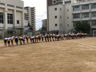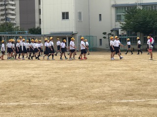 熱中症対策もあり、少しずつ、隙間時間の練習です。6年は、小学生最後の力強い感動の演技をめざして頑張っています。