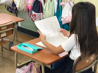 児童朝会のお話から:姿勢を正して取り組む(児童の姿紹介)