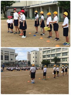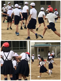 2学期はじめての児童集会は、1年と6年のなかよし学年でオニごっこをしました。初めの集合もなかよし班で整列をします。赤帽子をかぶったオニが合図と同時にスタート!オニ以外の白帽子の子ども達は、逃げ回っていました。6年生が、とても優しく1年生を気遣いながらふれあう姿がたくさん見られて、とても微笑ましかったです。長吉南小学校が自慢できるステキなところです!
