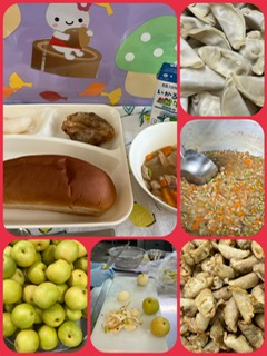 「あげぎょうざ」は、子どもたちに人気の献立でカラッと揚がっていてとても美味しかったです。また旬の梨(二十世紀)もみずみずしくておいしかったです。