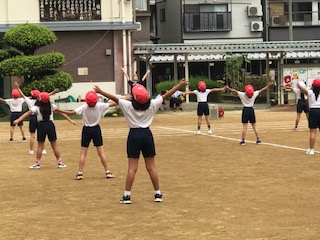 ラジオ体操も体育の学習として、しっかりがんばって動きを身につけています。