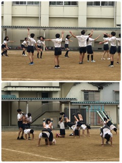 6時間目に運動会の練習をしている力強く、たくましい6年生の姿に、下校時の1・2年生が思わず足を止めて、見つめていました。「すごーい!!」「難しそうやなぁ!」と感嘆の声が聞かれました。低学年のうちから、高学年にあこがれや尊敬の意を抱くことは、よき伝統を受け継ぐことにとても大切です。また、高学年には大きな励みになります。