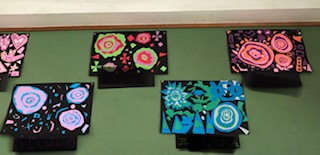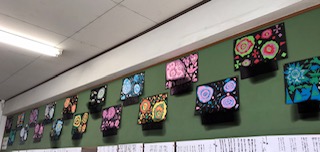 先日、紹介しました作品はこのように美しい花になりました。それぞれの個性が豊かに感じられます。教室も彩り鮮やかに楽しくなりますね。元気とエネルギーがいっぱいです。