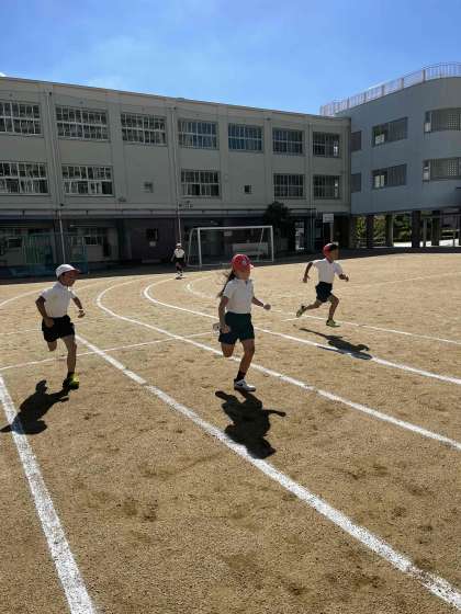 秋らしくなってきた青空のもと、1時間目から、運動場で徒競走と表現運動の練習をしました。整列や踊りの立ち位置など、細かい微調整を行い、最終段階の練習に入っていいます。
