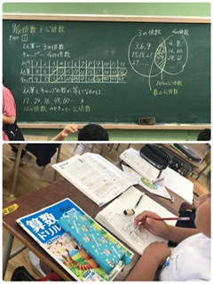 3クラスに分かれて、公倍数・公約数の学習です。2つの数の倍数または約数について、規則性を見つけられると理解が深まります。問題もすぐに解けるようになるはずです。頑張っています。
