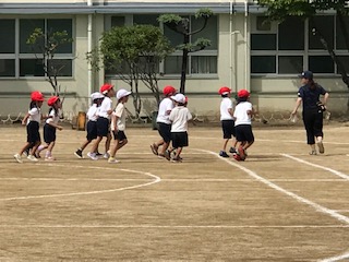 演技、競技だけでなく、整列の仕方や入退場についてもしっかり練習し、小学生として、運動会の動きを学習しています。成長しています!