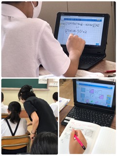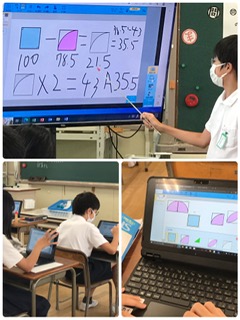 特に図形の学習では、タブレットが大活躍します。色を付けたり、回転させたり、自由自在に移動させたりすると、分かりやすく、説明や発表にも役立ちます。
