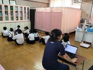 中学年の視力検査1 保健室で検査です。4年