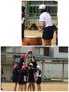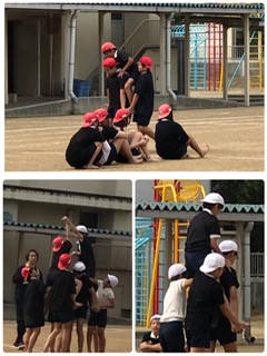 これはで、騎馬の作り方をいろいろ話し合い、安定した騎馬を工夫してきました。ついに、本番さながら、運動場で練習しました。力強いです。