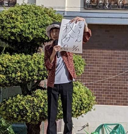 講話として23日の「秋分の日」について、6月の「夏至」の意味も思い出しながら、話をしました。日の出が遅くなり、日の入りの時刻が早くなるので、安全に気を付けるように注意も含めました。