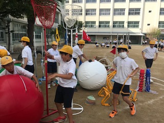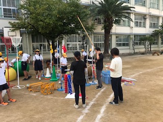 ・いろいろな道具を運動場に準備などするのは、運動委員・給食・保健委員会。