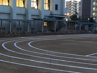 教職員の全力で、最高の素晴らしいトラックのラインそして、フィールドが完成しました!2時間以上かけて、正確に。ブラシもしっかりかけて、最高の会場ができました!明日の本番を待つばかりです!