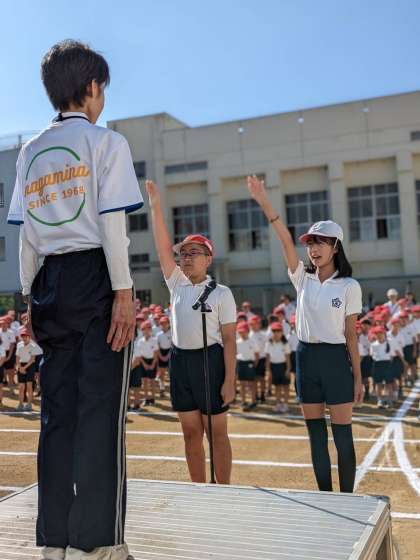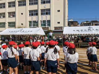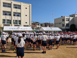 お天気がよく、青空も清々しい朝、子ども達が運動場にそろいました。しっかり話を聞いて、今日の演技や競技に、やる気いっぱいです。楽しみですね。