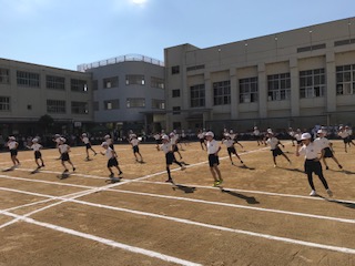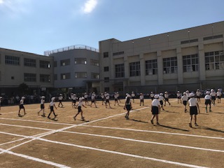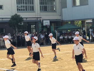 学年演技で、一番初めです。緊張を乗り越えて練習の成果を見せました。元気が弾けています。