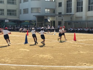 二人の息を合わせて、コーン付近で、素早くうまく回転できるようになりました。