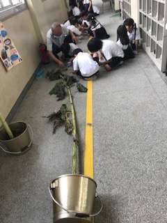 夏に咲いたひまわり。本校のひまわりは大きくて、立派です。種もたくさんつけました。今日は、ひまわりの種取りとひまわりのつくりを近くで見ました。大きさにびっくり、感動していました。