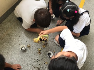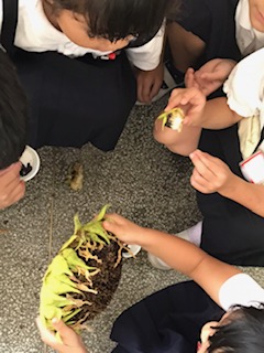 1年 生活科 ひまわりさん、ありがとう。種とりです。